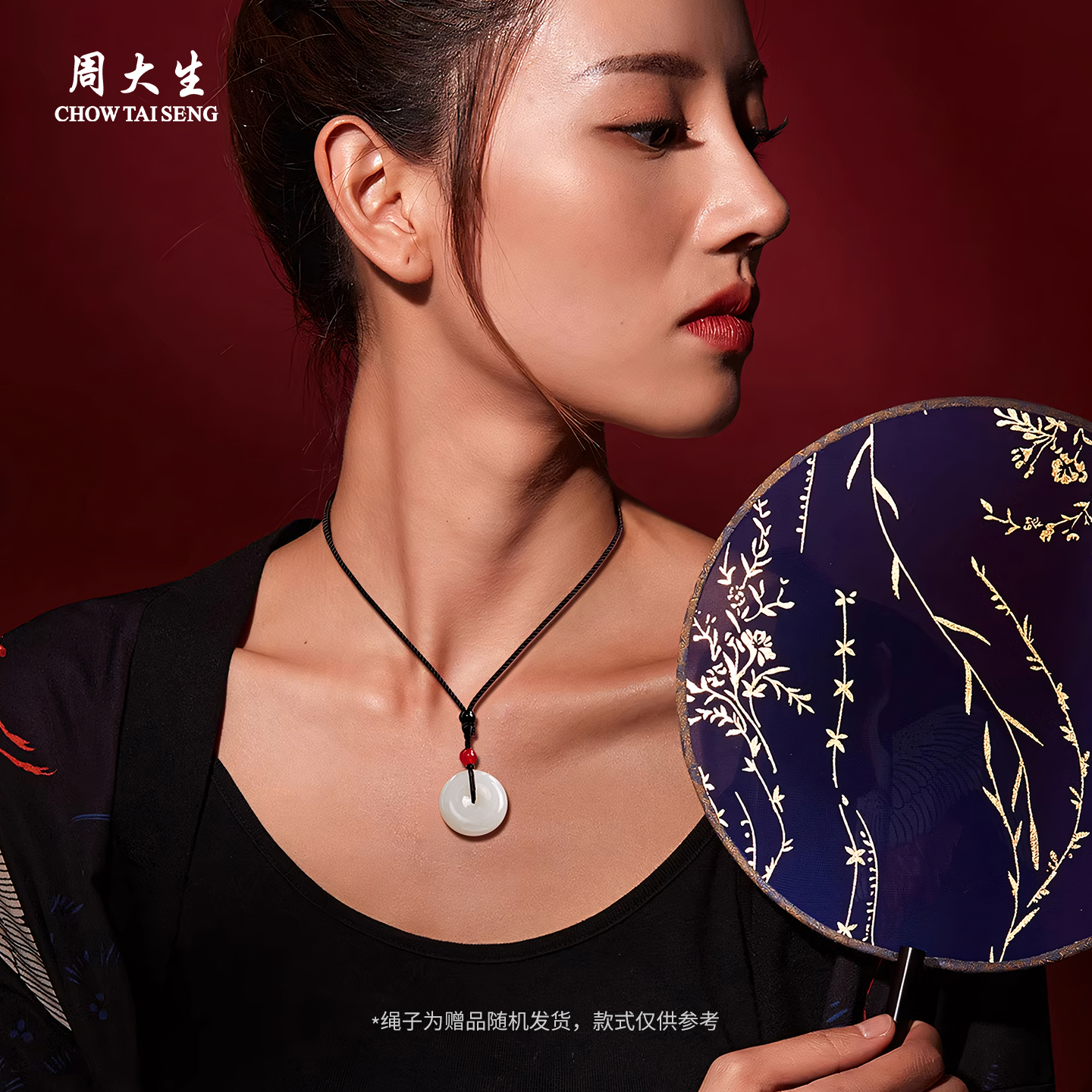 周大生官方和田玉平安扣吊坠挂件正品天然玉石项链女款生日礼物
