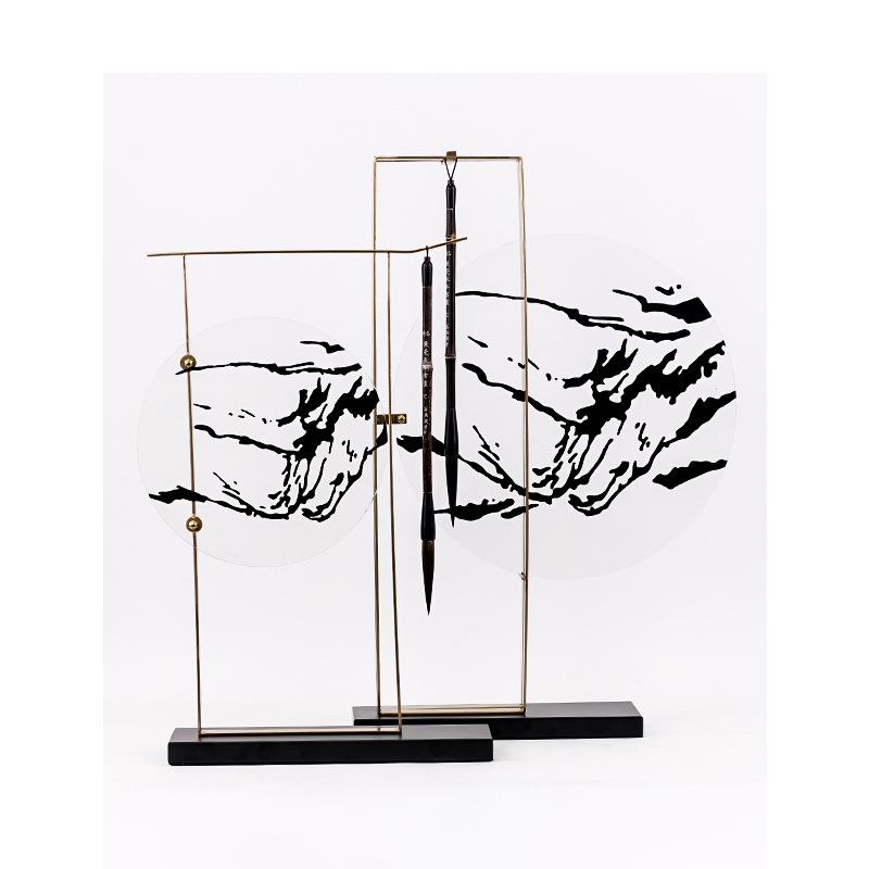 现代新中式创意屏风毛笔架摆件别墅样板房酒店书房书桌玄关装饰品