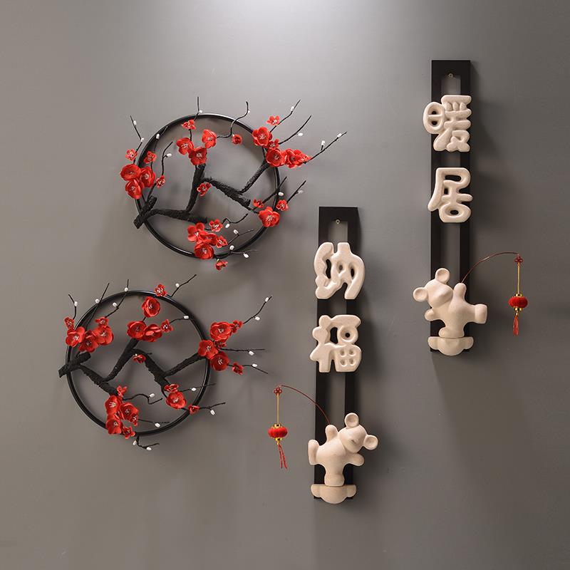 暖居创意墙上装饰品新中式梅花挂件客厅电视柜沙发背景墙名宿壁饰