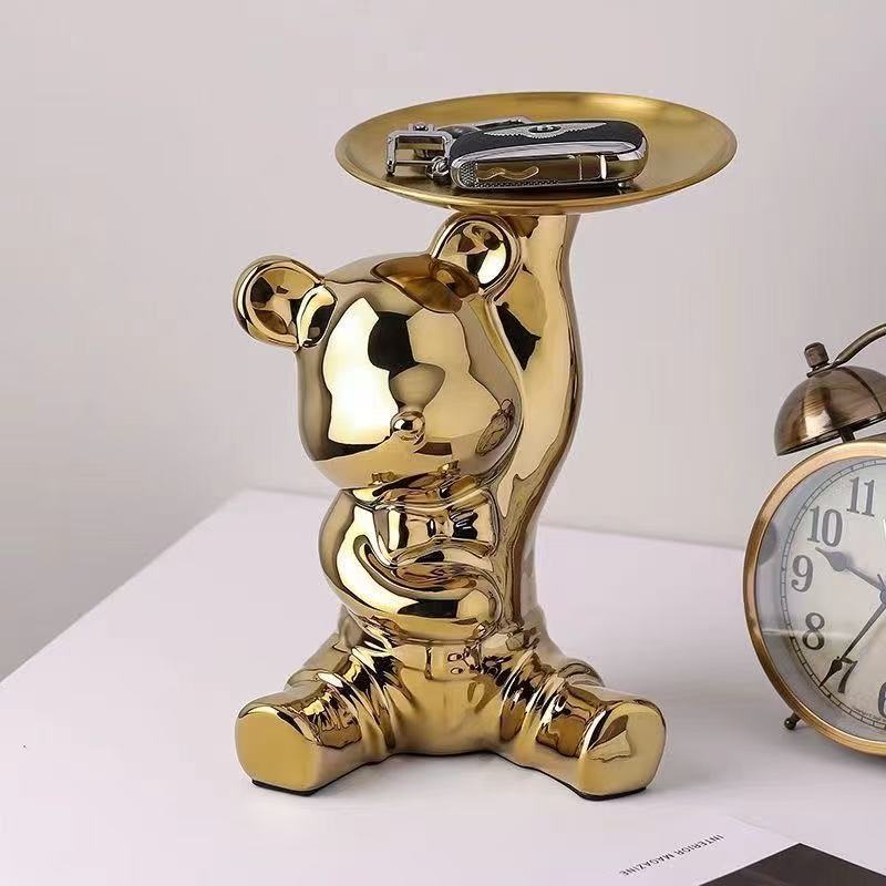 暴力熊放钥匙收纳托盘门口鞋柜玄关摆件存钱罐陶瓷客厅轻奢装饰品