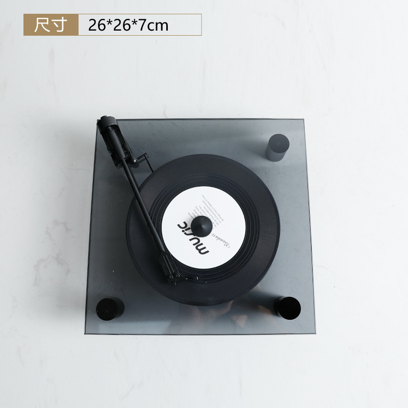 简约现代高端感留声机模型黑胶唱片水晶装饰品样S板间桌面创意摆