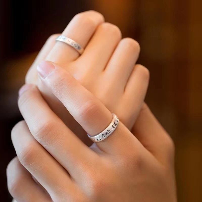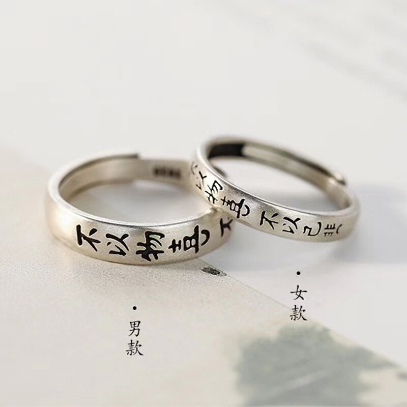 国风925纯银不以物喜不以己悲戒指一对女复古情侣款对戒食指戒男