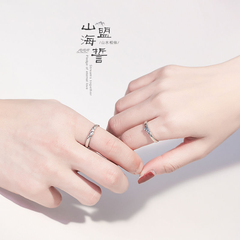 s925纯银日韩海誓山盟情侣戒指一对复古男女对戒简约小众学生礼物