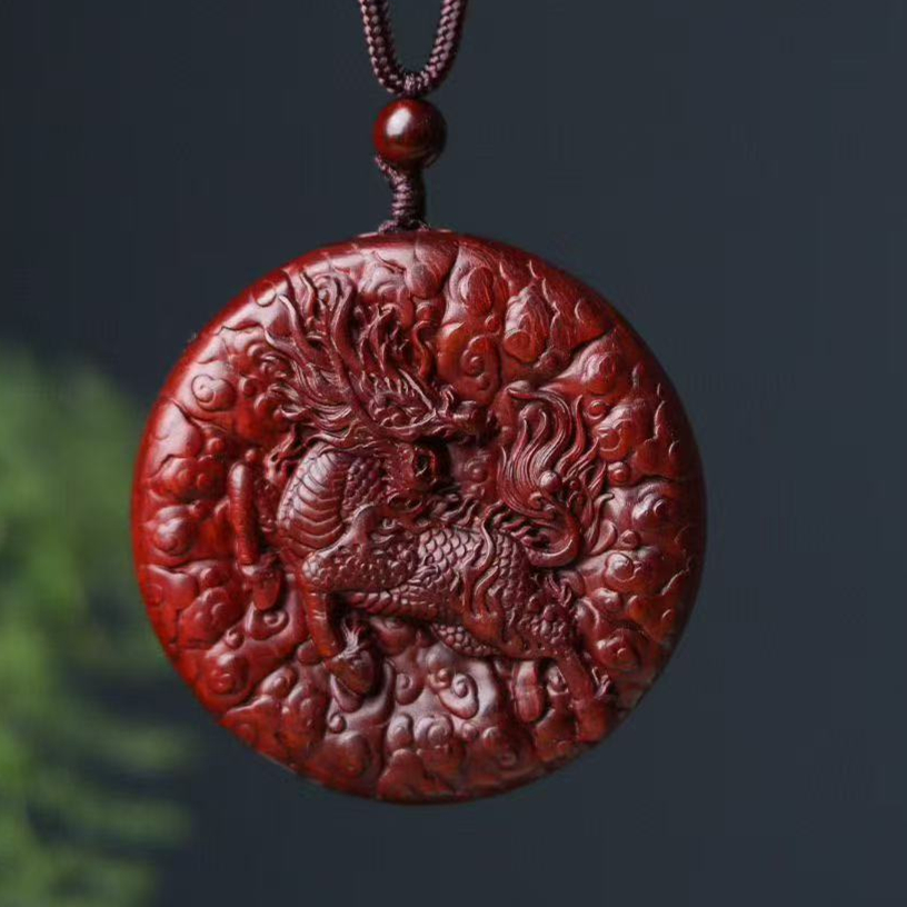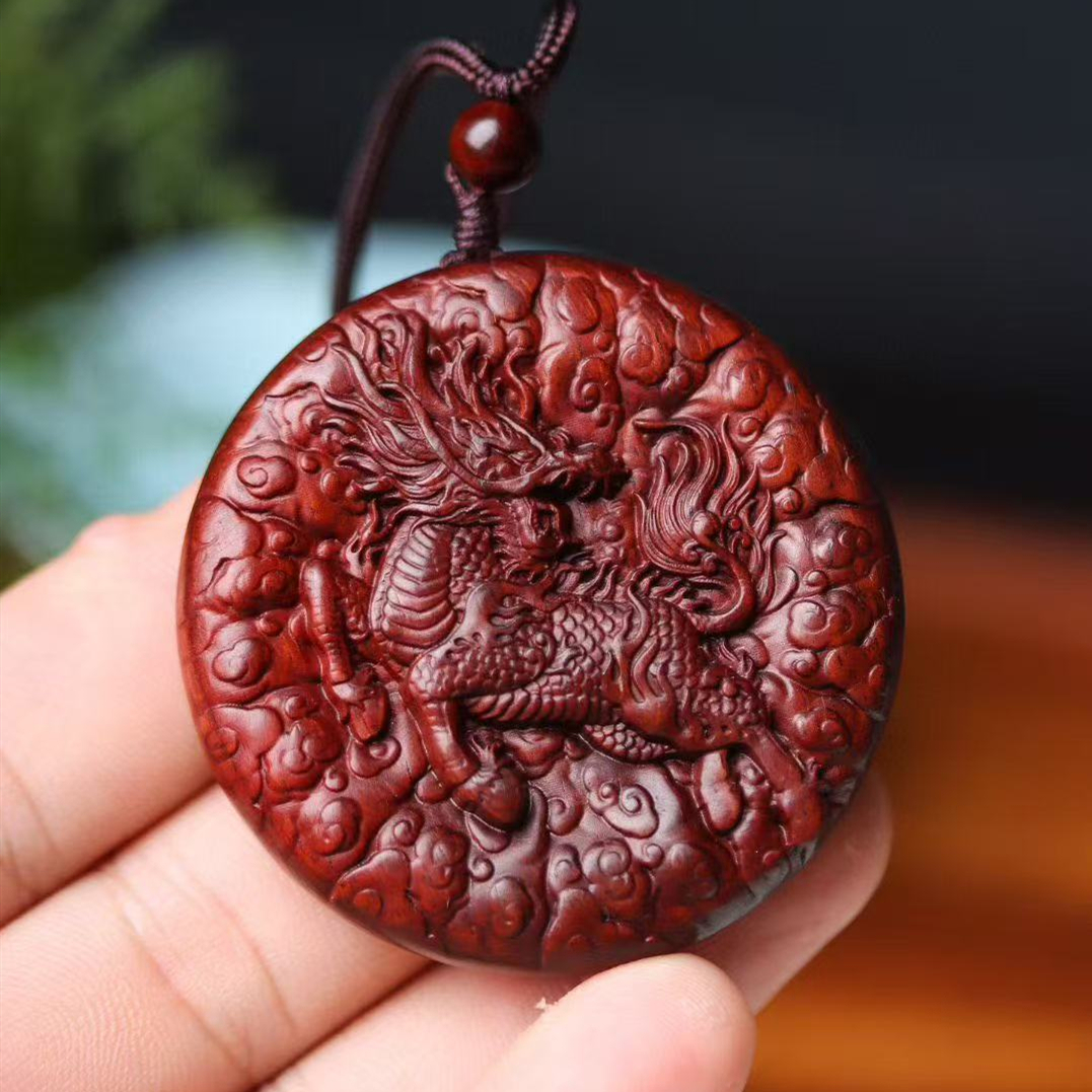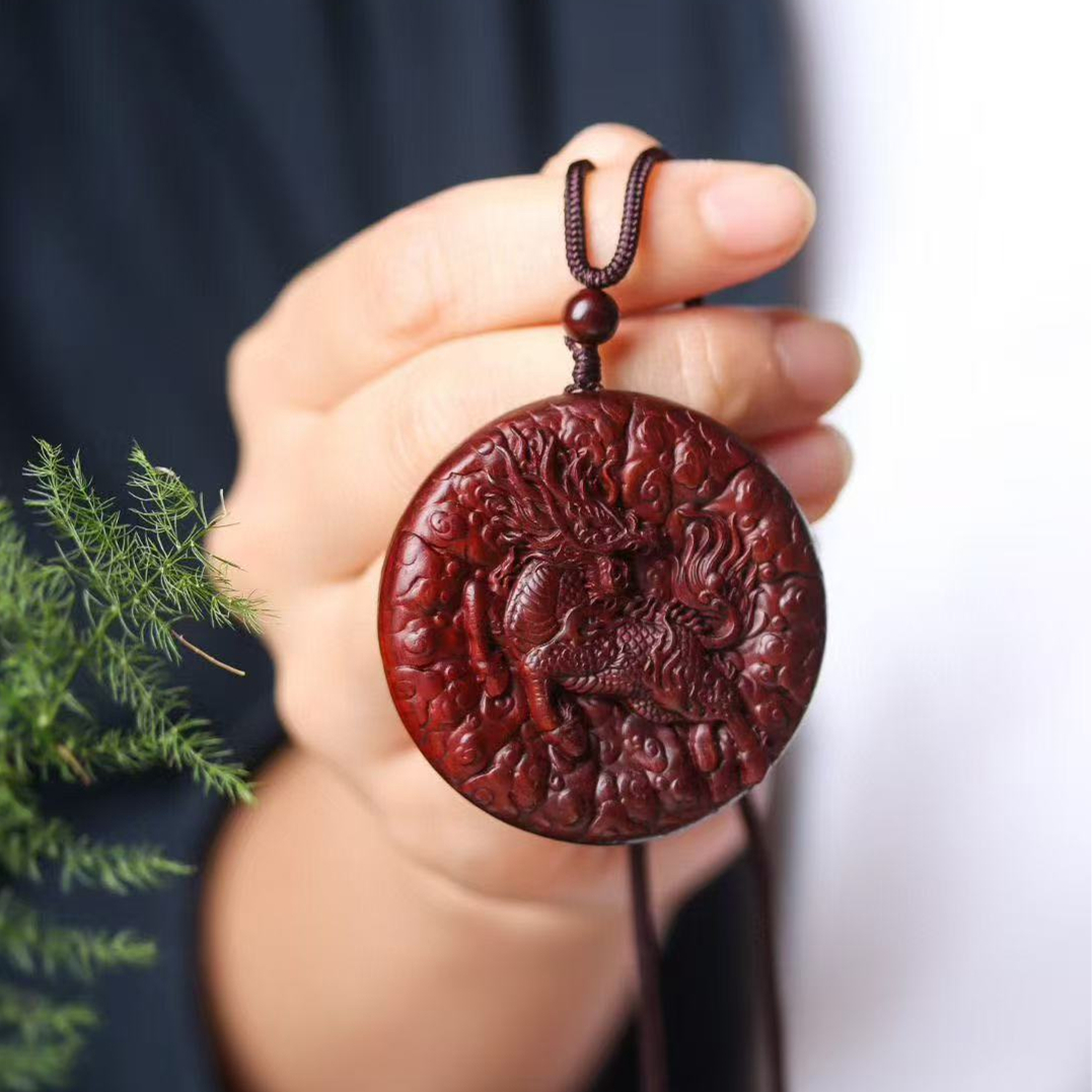 圆形麒麟牌招财纳福木牌挂件实木吊坠小叶紫檀红木雕刻檀木配饰