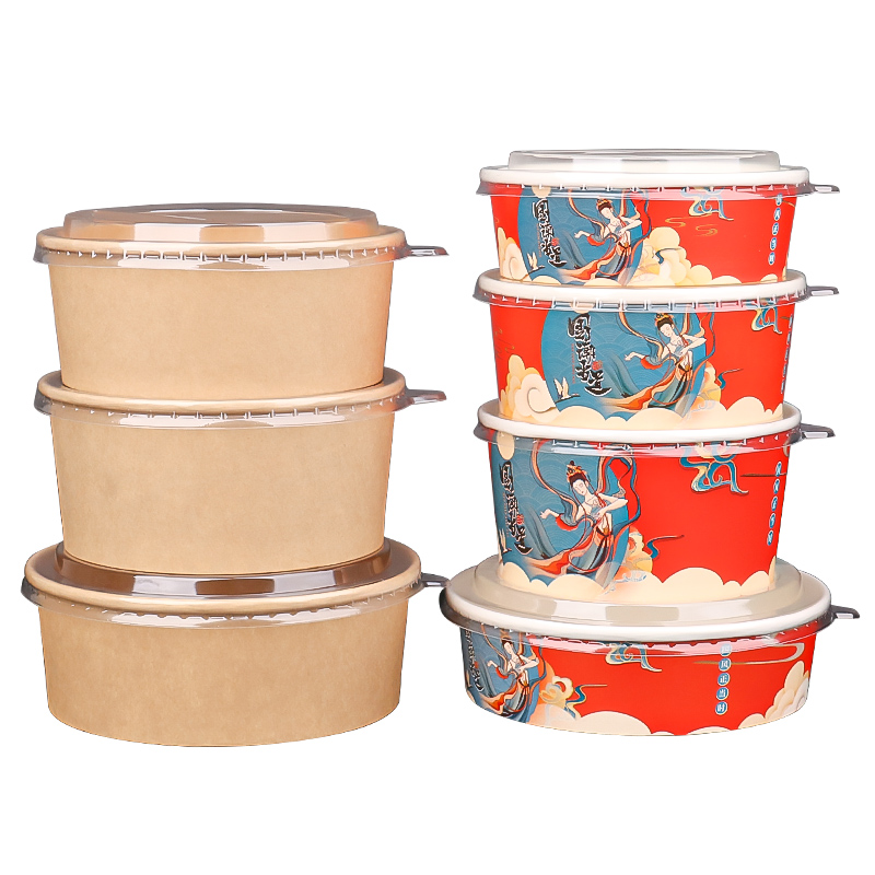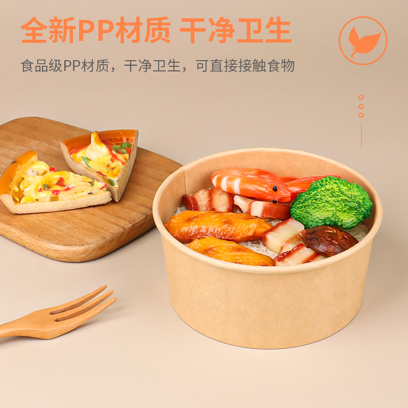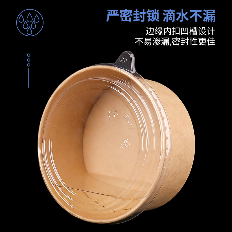 牛皮纸打包盒圆形水果沙拉包装盒加厚卤肉饭盒餐盒带盖一次性纸碗