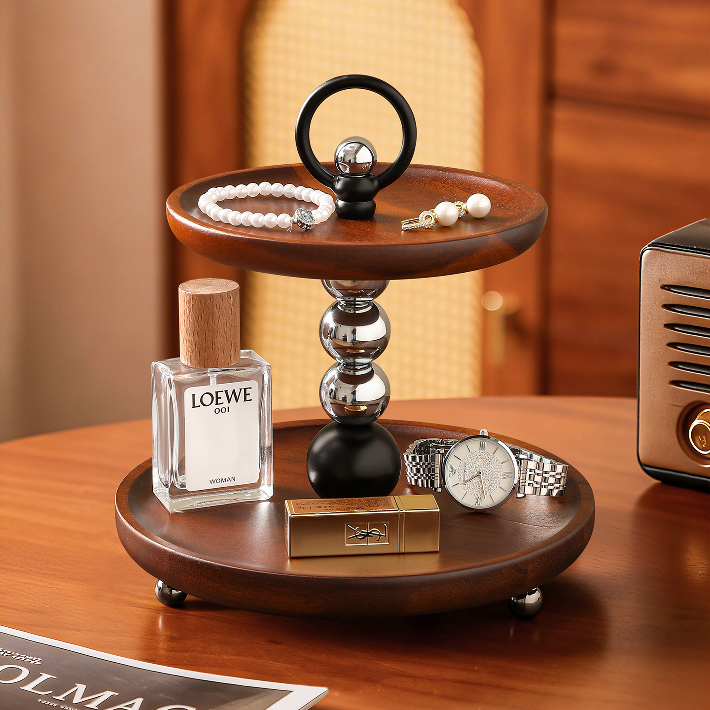 中古风玄关置物架入户钥匙收纳摆件桌面鞋柜家居装饰品摆盘展示架