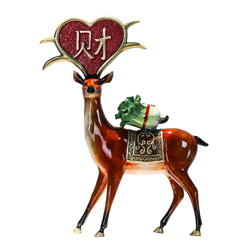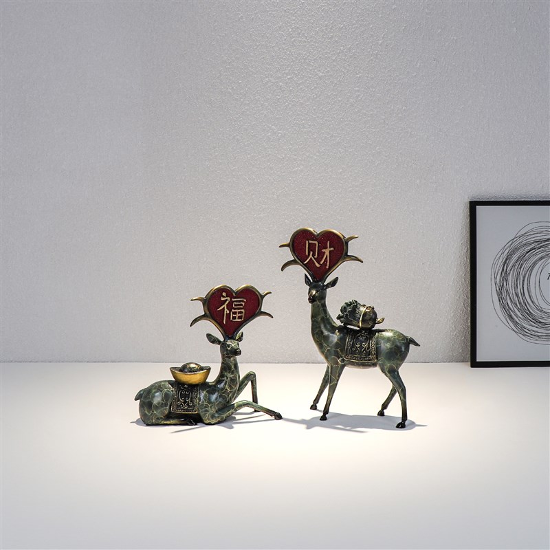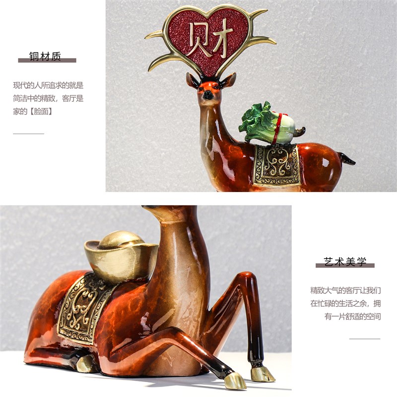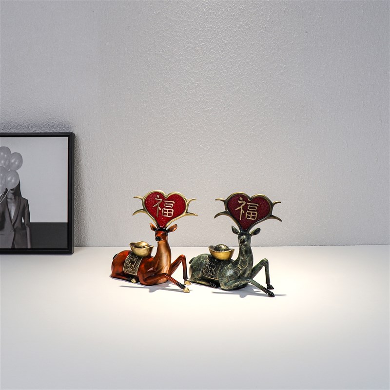 新中式招财彩绘铜鹿摆件玄关电视柜家居饰品客厅桌面乔迁开业礼品