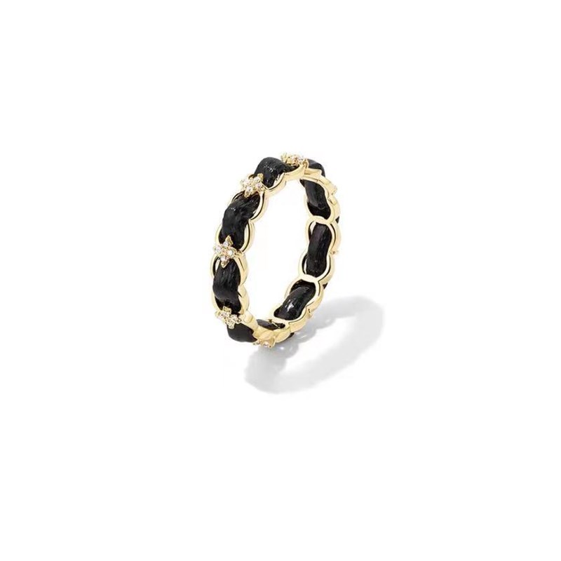 黑色编织皮绳 戒指情侣对戒潮酷2023年新款潮时尚戒子花朵指环