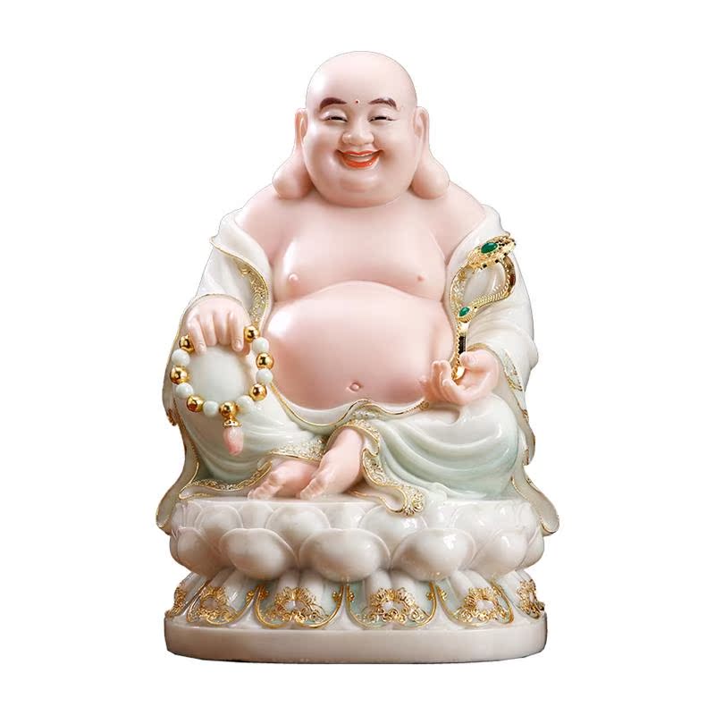 汉白玉笑佛摆件家用供奉客厅弥勒佛菩萨大肚笑佛像开心弥【议价】
