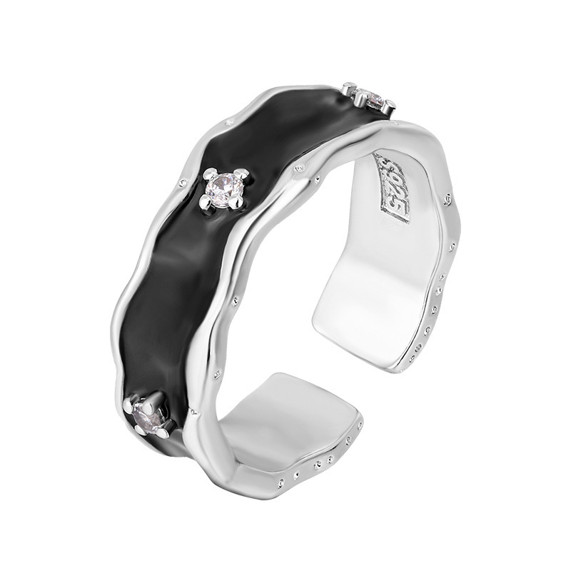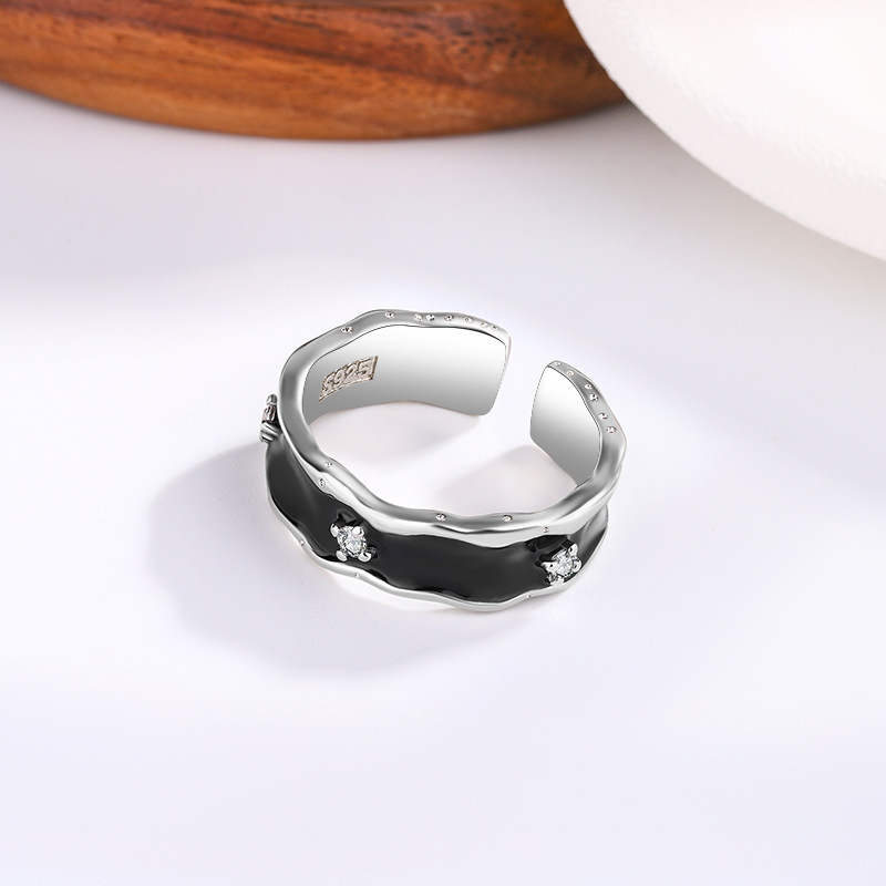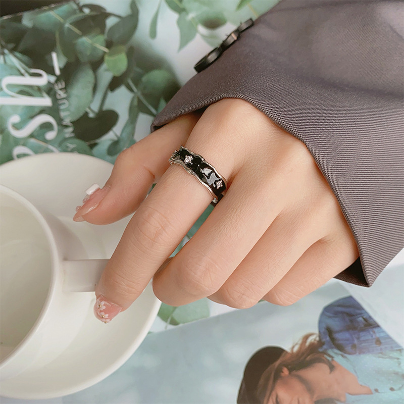 当前位置:首页>商品详情>新款小众设计新款黑色不规则戒指镶钻皓石冷淡风高级感开口指环