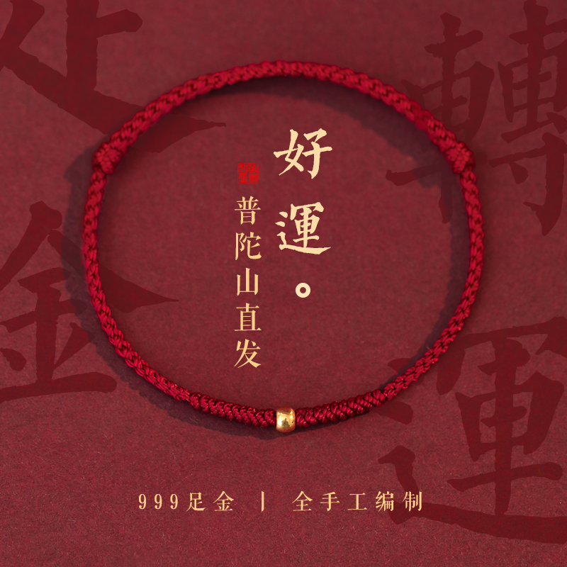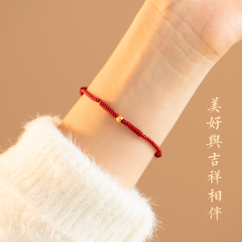 999足金红绳手链女蛇年本命年转运珠好运编织绳手绳男礼物送女友