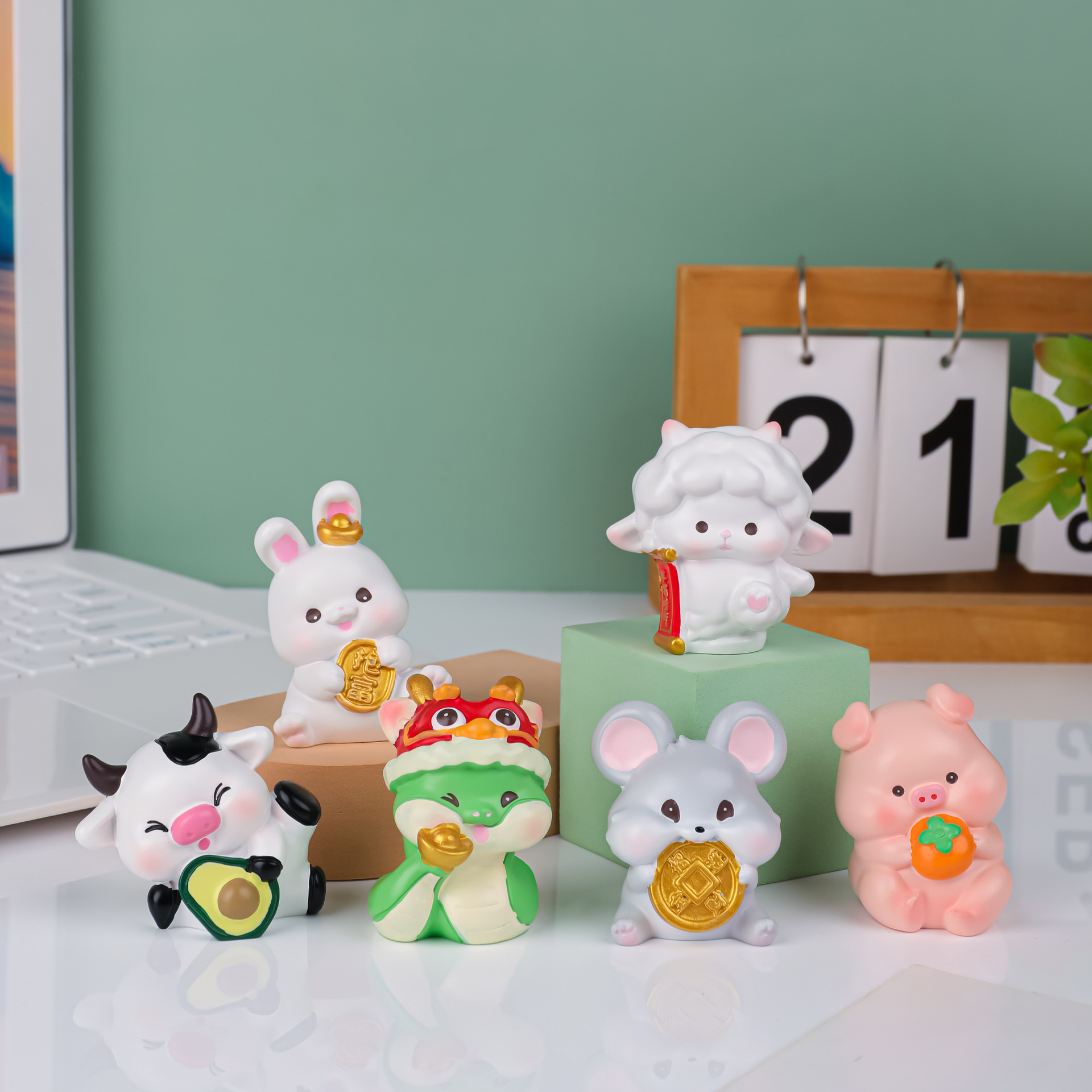 可爱十二生肖小动物创意桌面装饰品汽车迷你小摆件卡通蛇兔猴玩偶