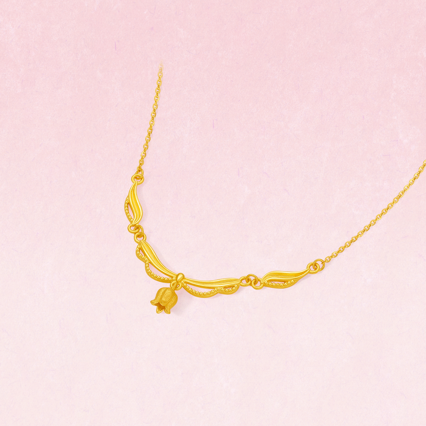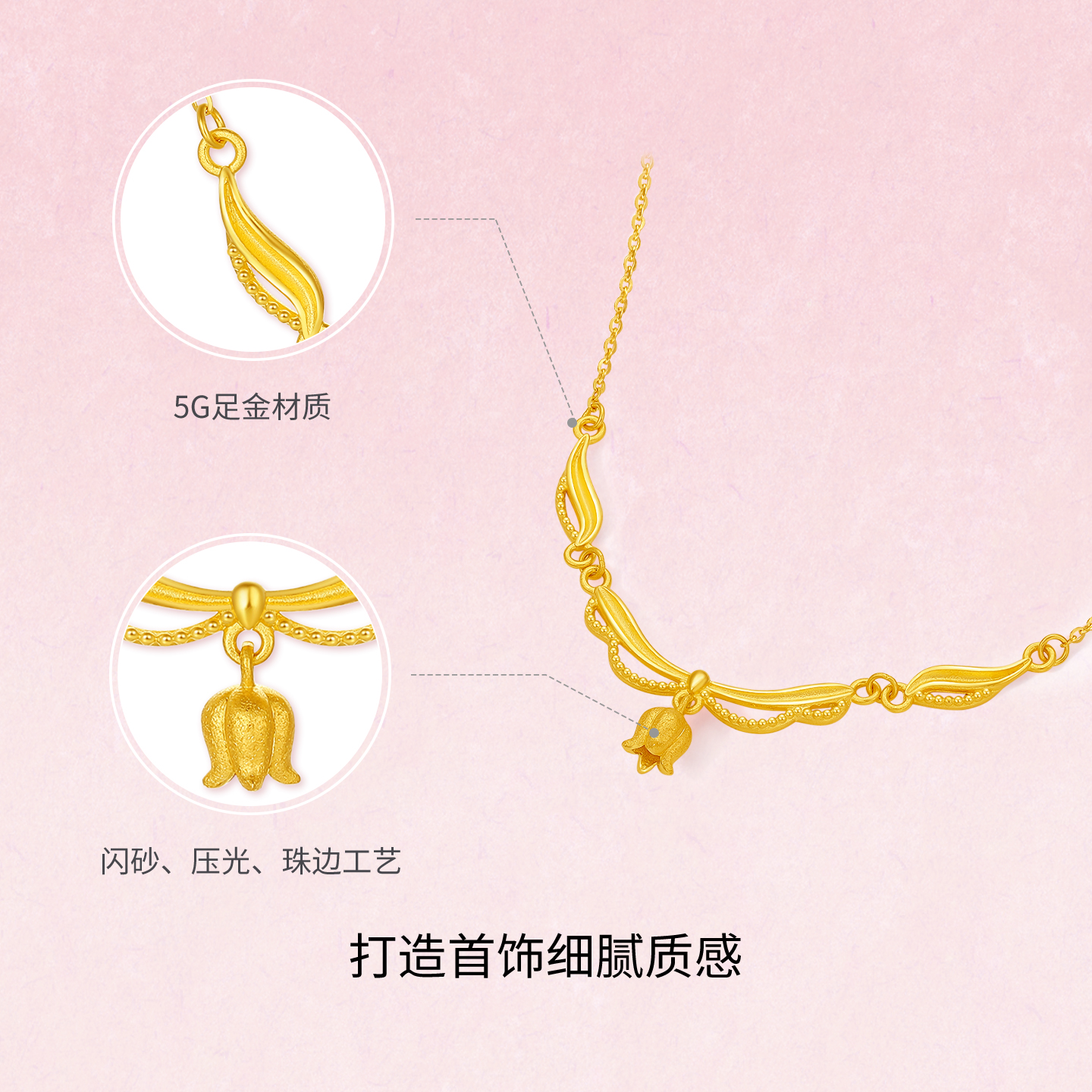 周六福黄金计价5G足金链坠春日浪漫铃兰花园项链蕾丝系列圣诞礼物