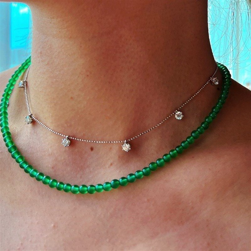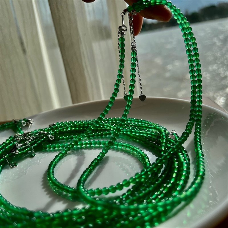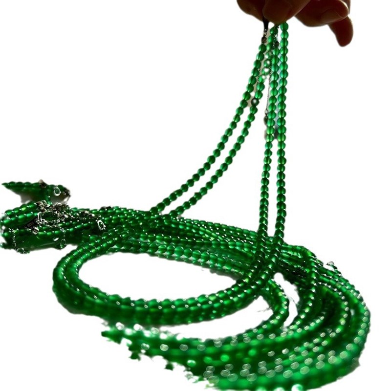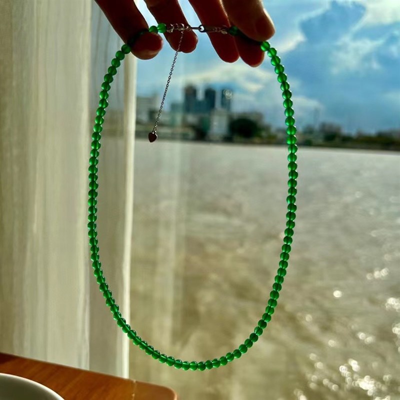 迷你4mm天然绿玉髓短款锁骨链chockGer链简约百搭绿色圆珠项链叠