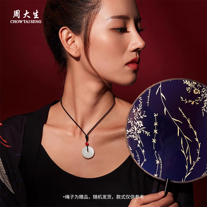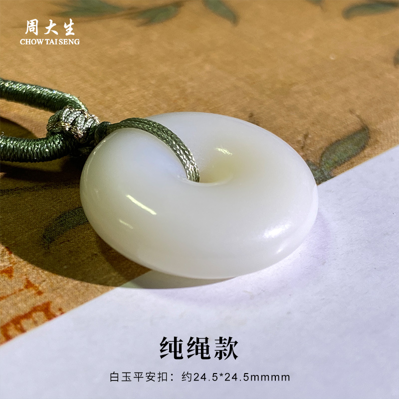 周大生官方天然和田玉平安扣吊坠男女白玉玉石挂坠生日礼物送女友