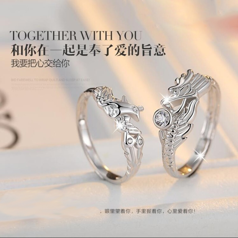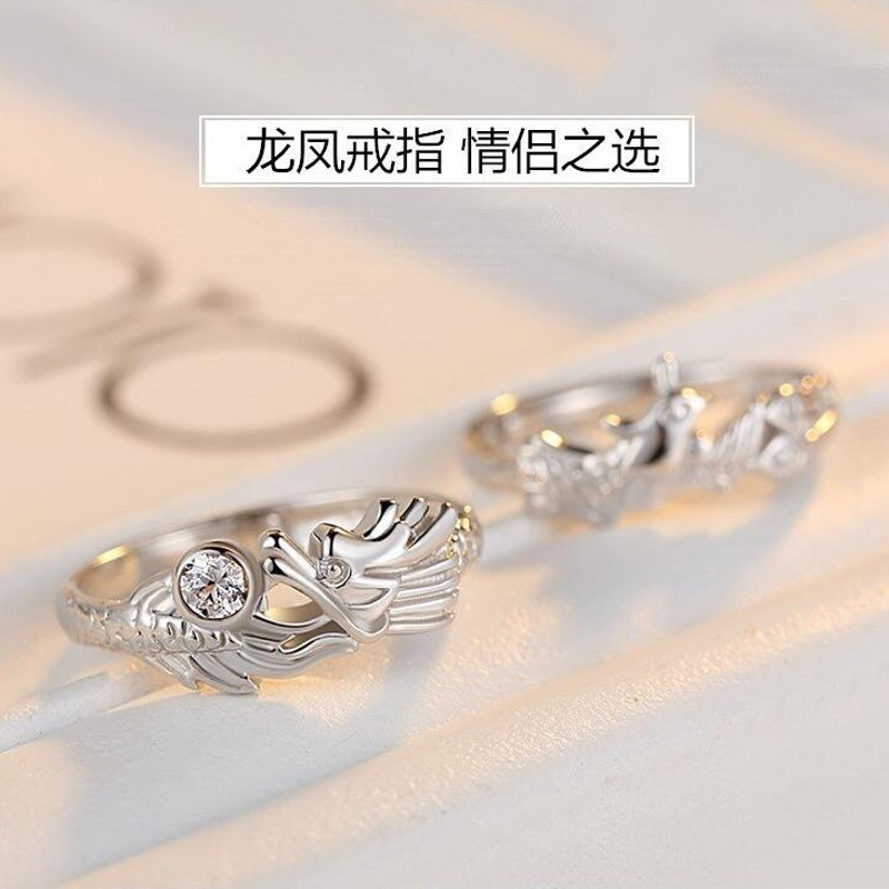 龙凤情侣对戒情侣戒指纯银一对女设计小众高级感时尚男个性独特