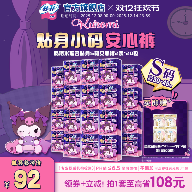 【囤货装】sofy/苏菲裤型卫生巾超熟睡夜用兔子安心裤组合40条