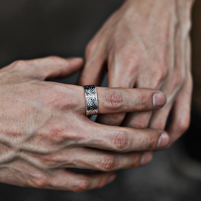 祥云心经戒指泰银男士貔貅国潮风时E尚百搭霸气潮男食指环个性潮