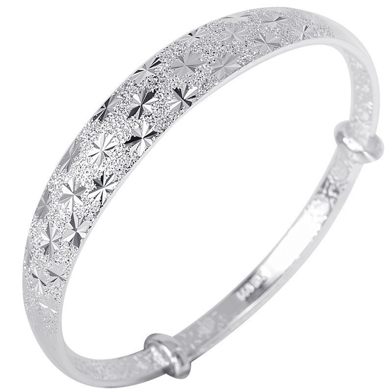 【新年转运】满天星银手镯9999纯v银手镯女宽面推拉足银镯子送妈