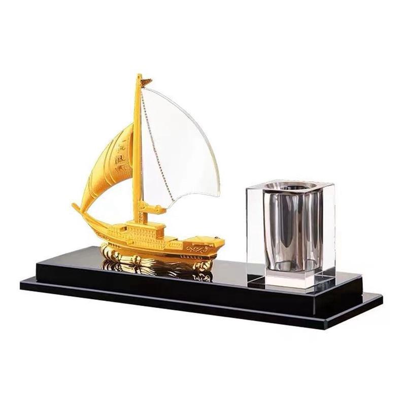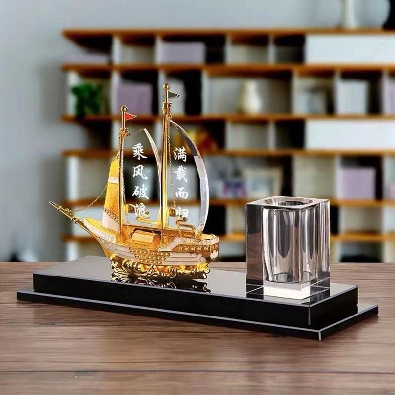 新款水晶办公艺术品摆件 帆船笔筒 一帆风顺摆台