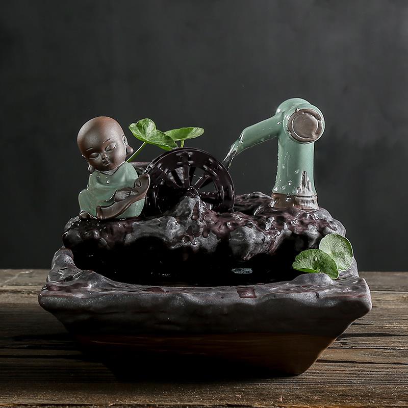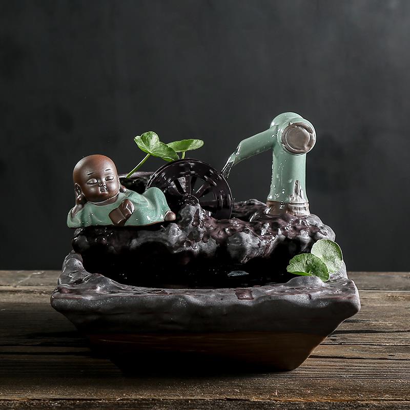正品禅意可爱小厅器和尚流水循环抽水摆件陶瓷家居客饰品礼开业乔