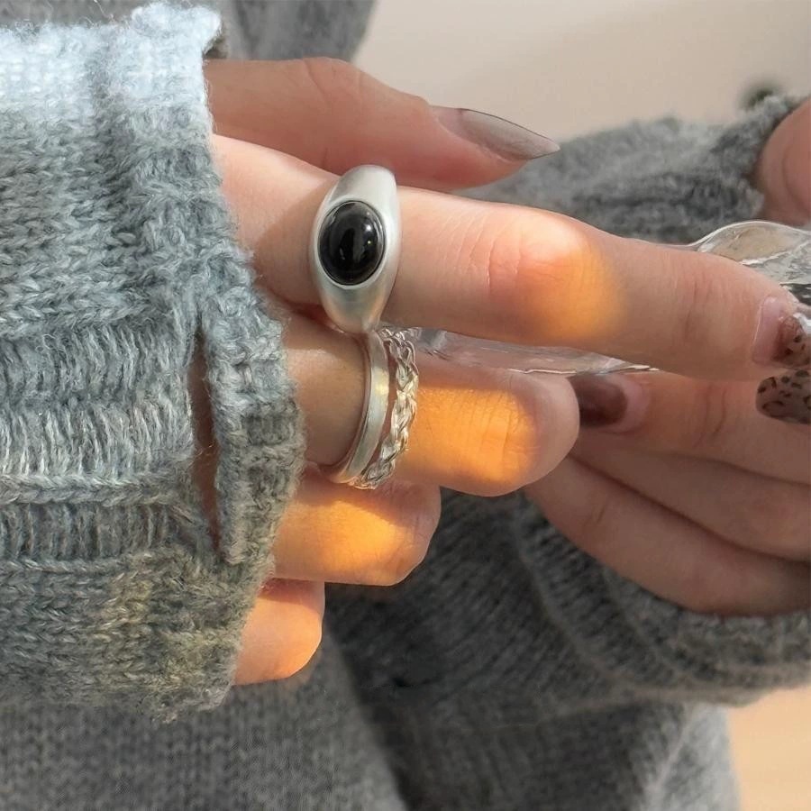 甜酷百搭双层麻花戒指女黑色椭圆时尚轻奢开口指环网红个性食指戒