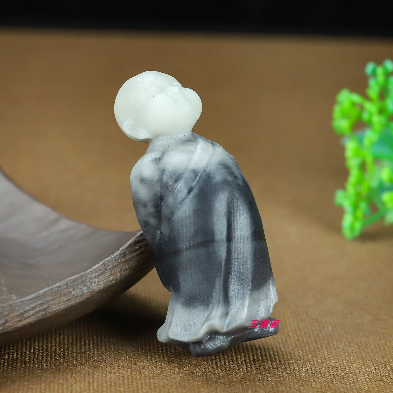 和田玉青花小和尚把件青花俏色小和尚办公室小摆件