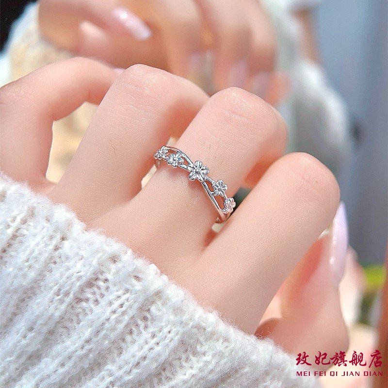 玫妃正生双层花朵s925纯银戒指有钱花开口食指戒女小众轻奢高级感