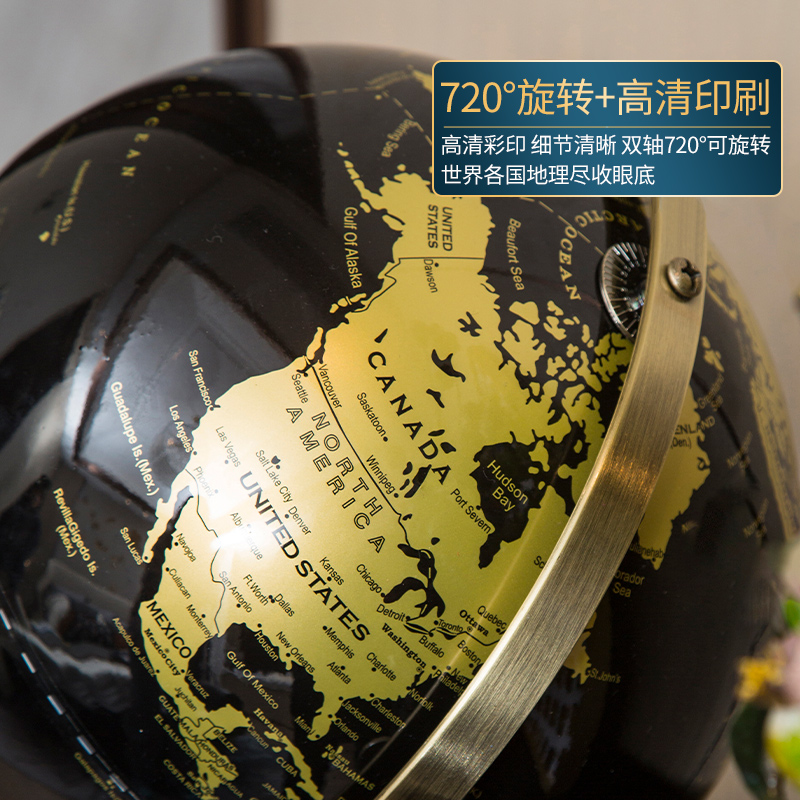 速发欧式轻奢地球仪摆件办公室桌面书房创意工艺品客厅家居装饰品