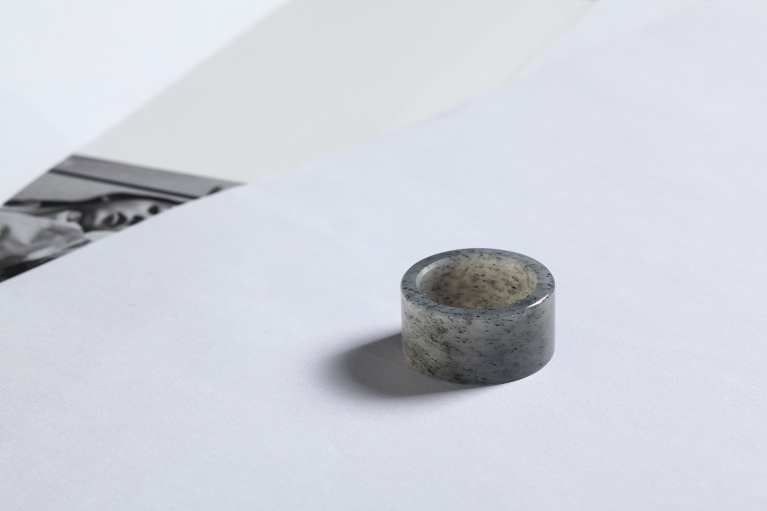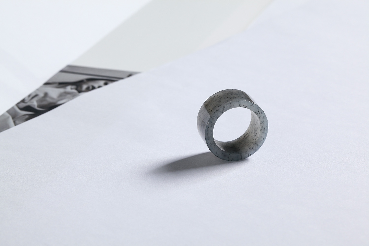 21号戒指 新疆和田玉灰色青花直切款指环 2907