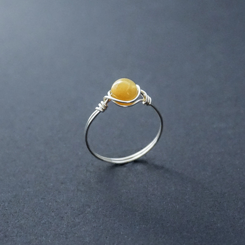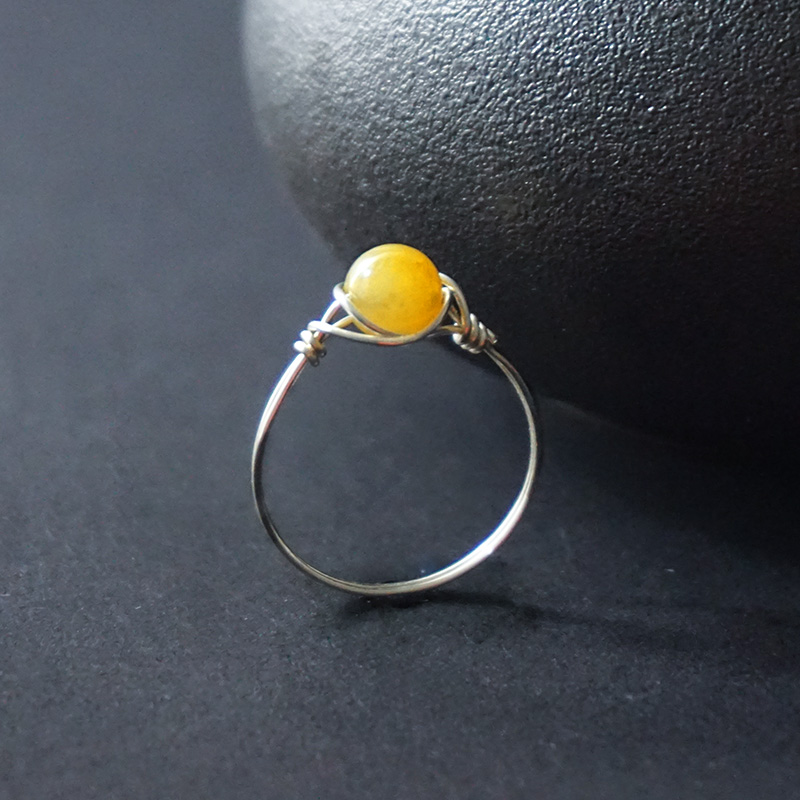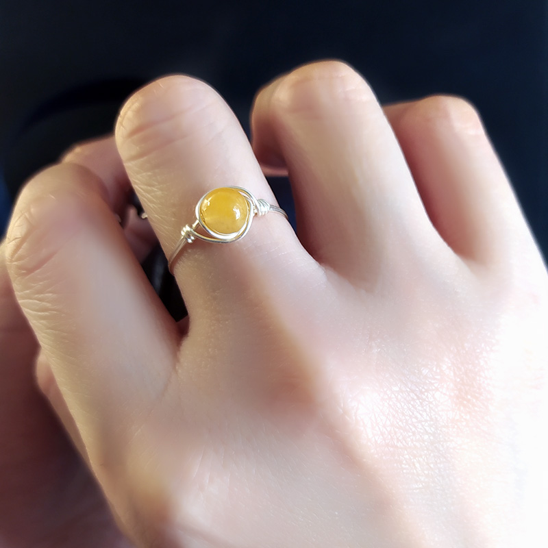 【招财转运】黄玉999足银手工戒指女细款胖手大号小指简约尾戒
