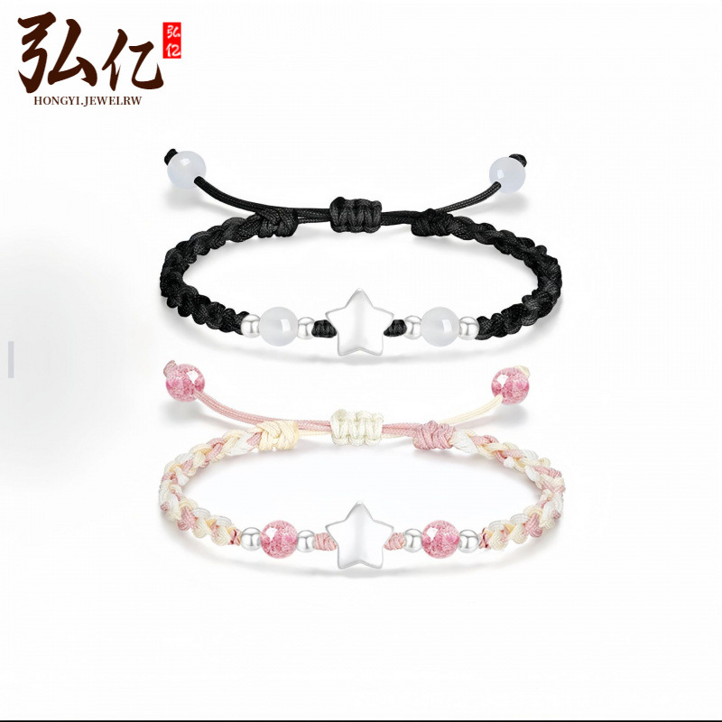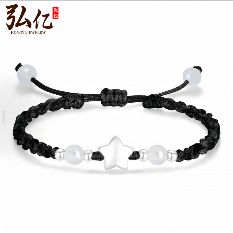 代发999足银星星闪烁手链DIY编织情侣款纯银手链可调节手绳