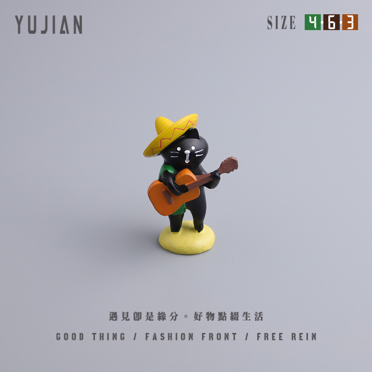 遇见丨声生不息~创意演唱吉他猫桌面小摆件送男生趣味万圣装饰品