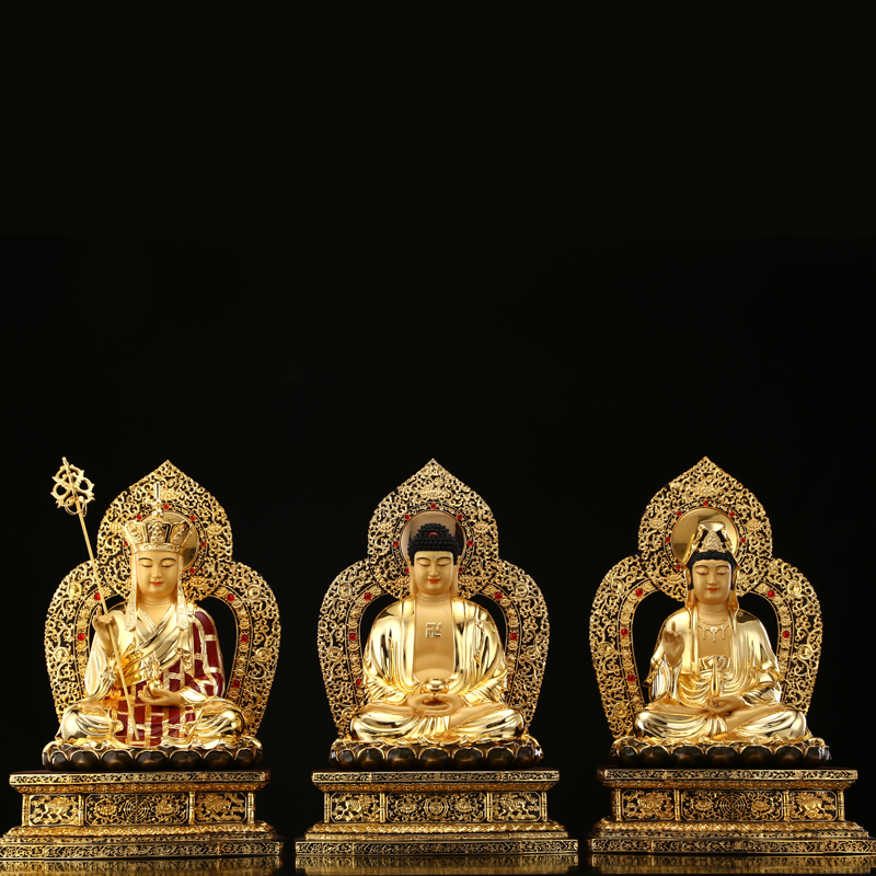 台湾纯铜鎏金观音菩萨坐刚座观音佛像摆件居家供奉观世音娑婆三圣