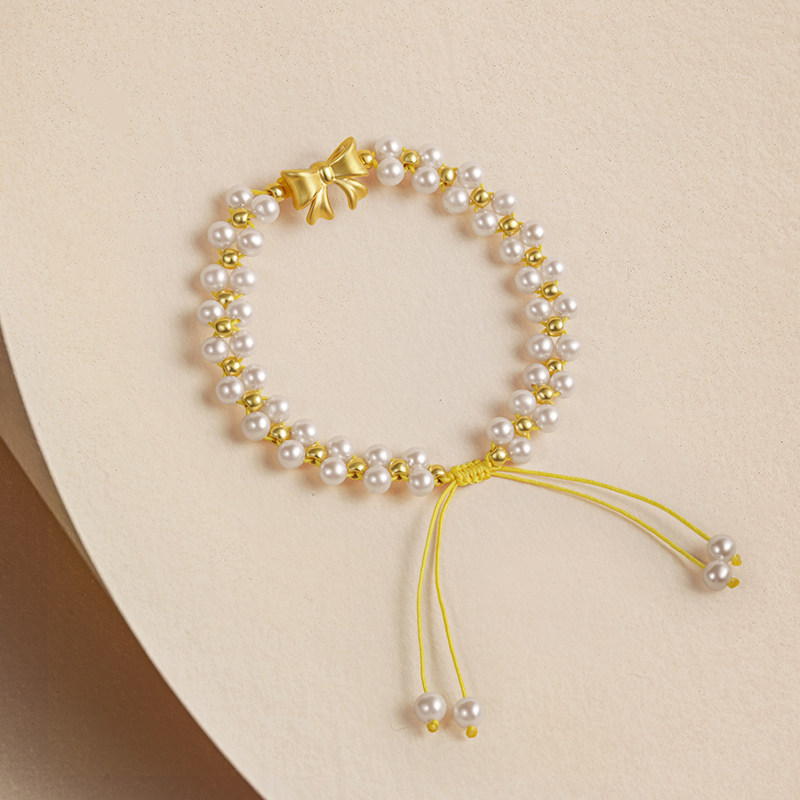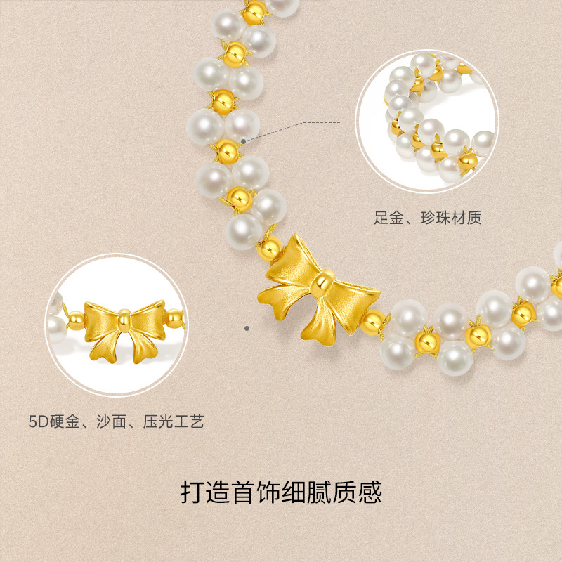 周六福黄金手链女珍珠手串蝴蝶结在逃公主手饰定价送圣诞礼物官方