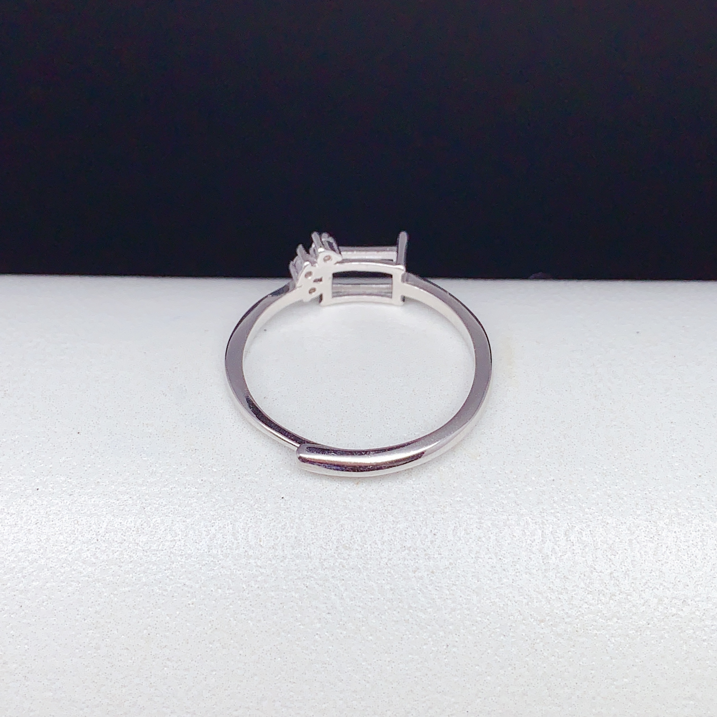 新款精工S925纯银韩版简约个性活口4*6mm长方指环戒指空托