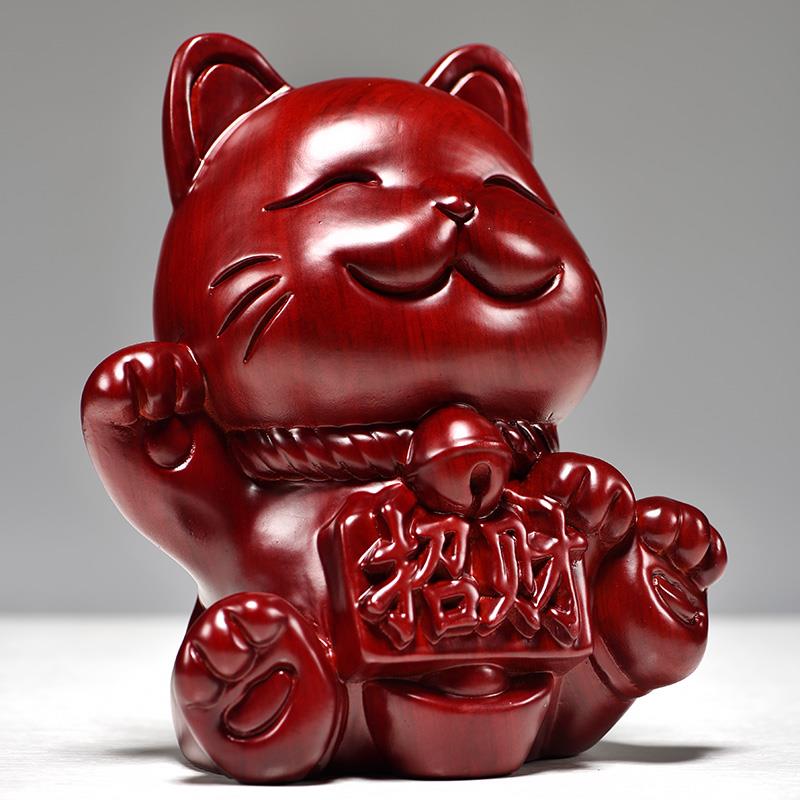 红色木质招财猫摆件开 业店铺收银柜台家居客厅乔迁新居送礼品发