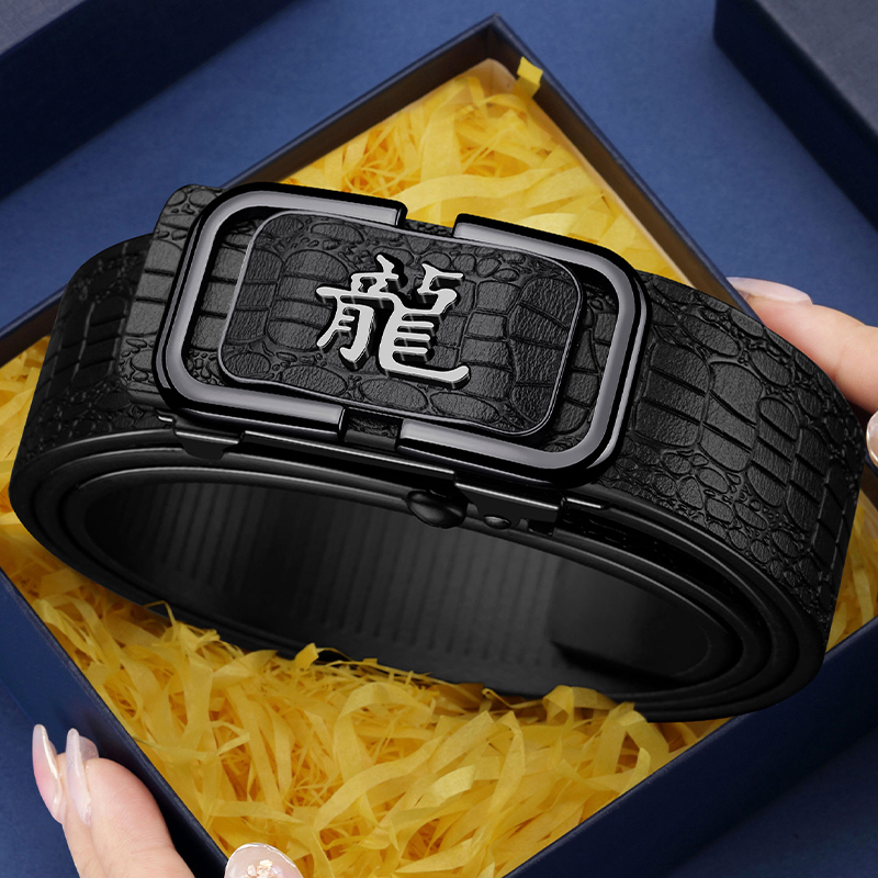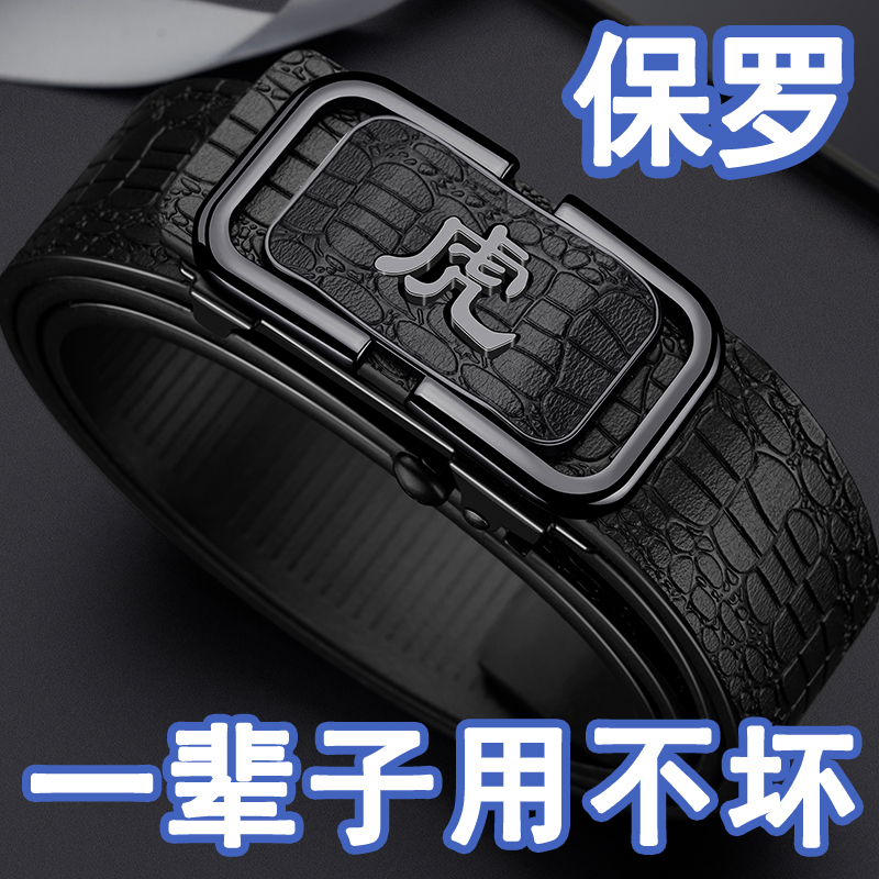 保罗皮带2025新款男鳄鱼纹纯牛皮高档自动扣正品商务十二生肖腰带