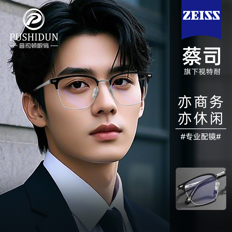 普视顿超轻纯钛半框眼镜男近视可配度数专业配散光高端商务眼睛框
