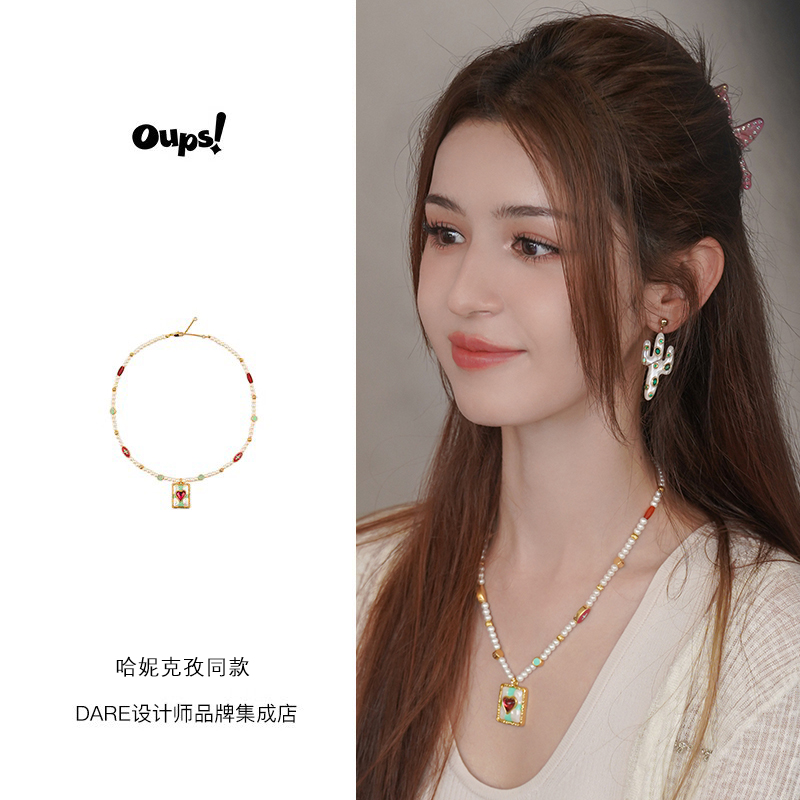 哈妮克孜同款oups!紫眼爱心项链珍珠百搭复古欧美小众原创设计