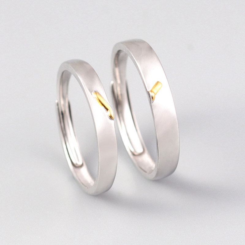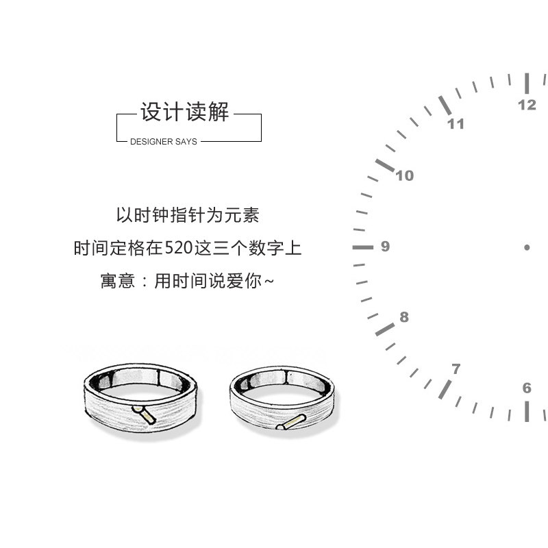 925纯银520情侣表白戒指女男小众时钟指针学生党一对暗恋刻字对戒