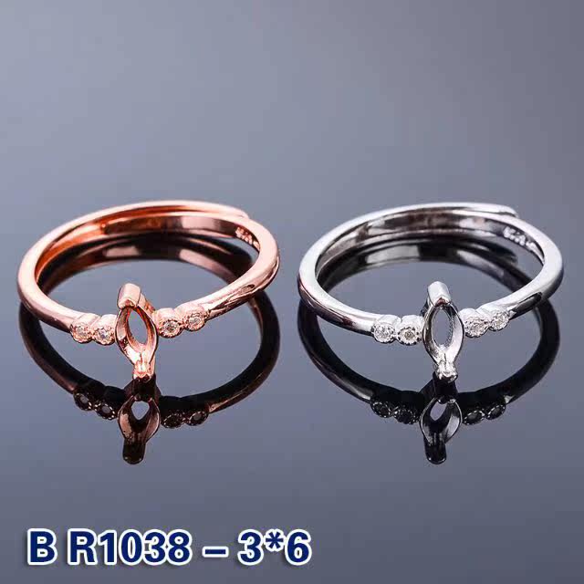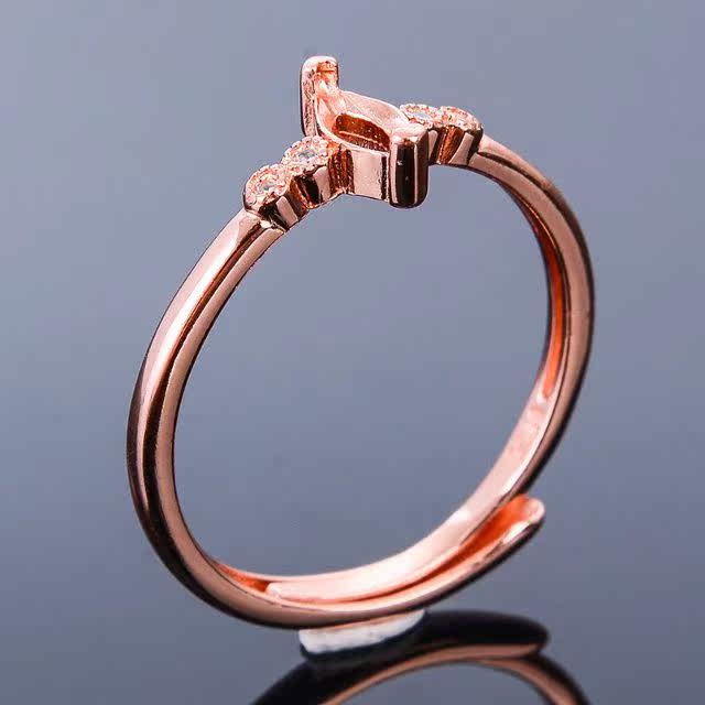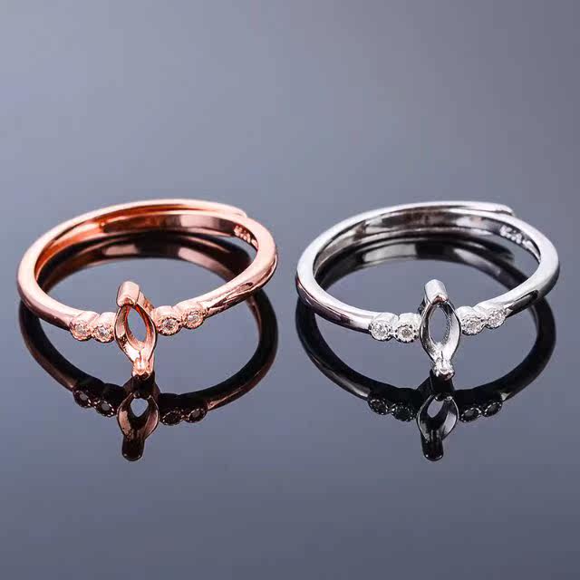 新款S925银镀金戒指空托清新简约镶嵌马眼3*6mm碧玺彩宝红蓝宝