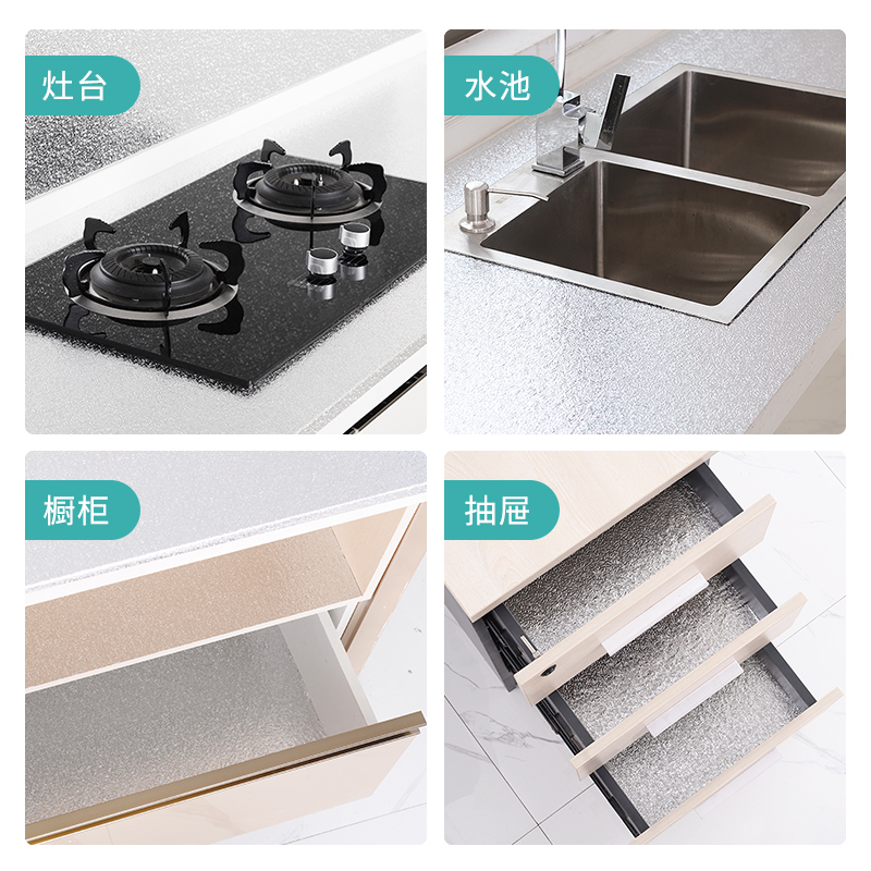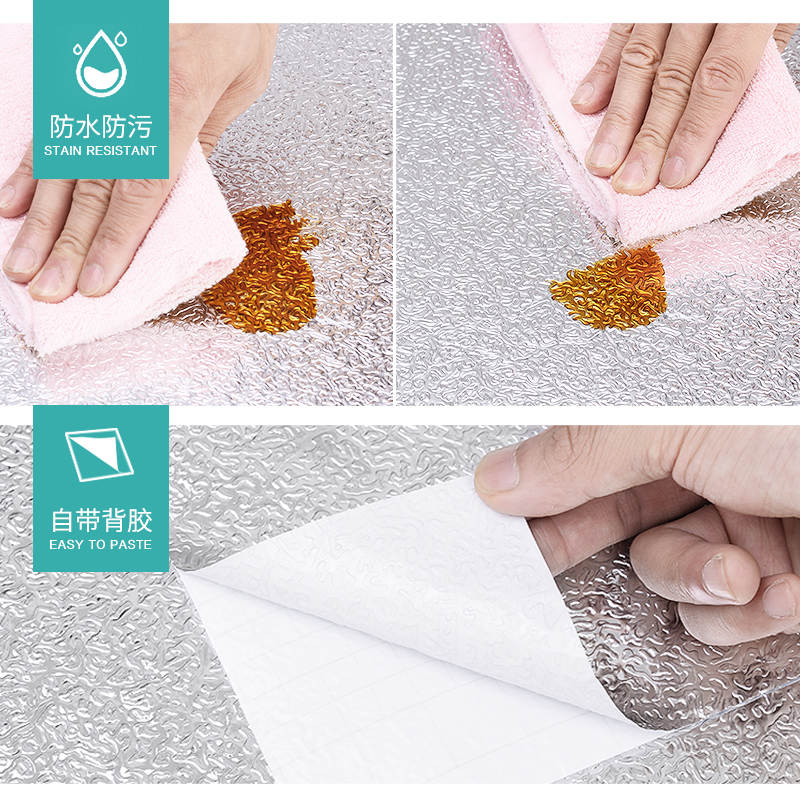 厨房防油贴纸自粘防水铝箔纸橱柜油烟机灶台用锡纸墙纸壁纸耐高温