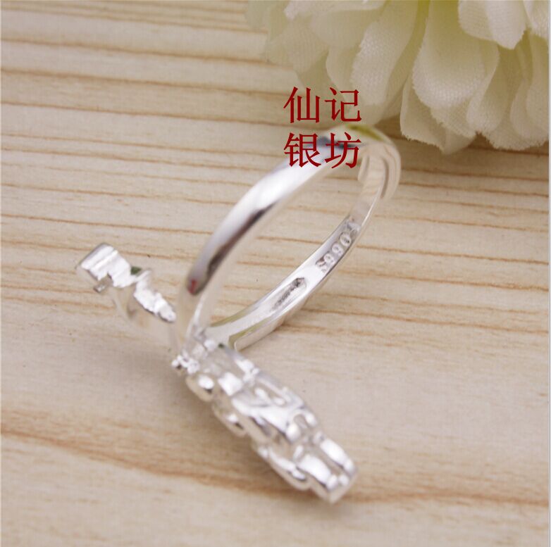 999 足银戒指 女 可爱孔雀指环 开口活扣个性银饰品 纯银戒指