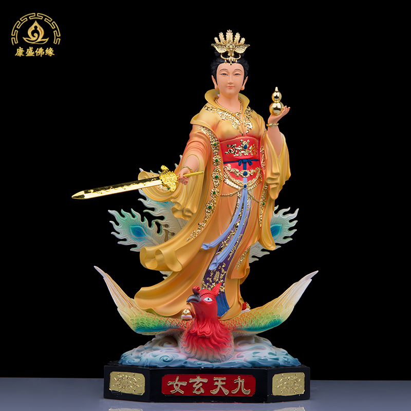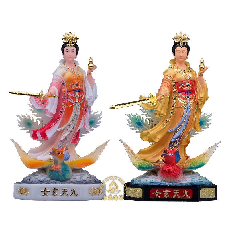 踏凤九天娘娘彩绘九天玄女站像玄母天尊寺庙家用镇宅佛像摆件