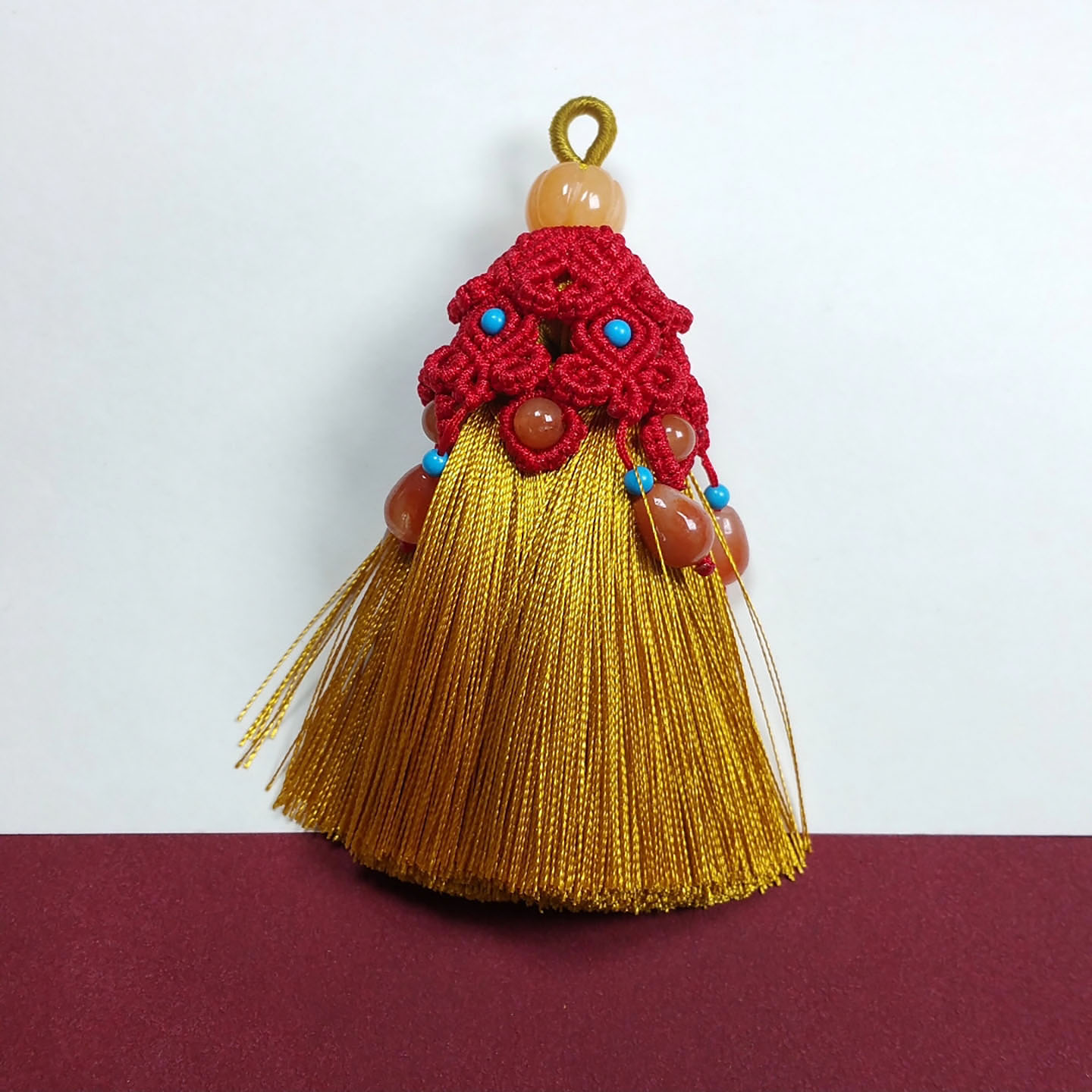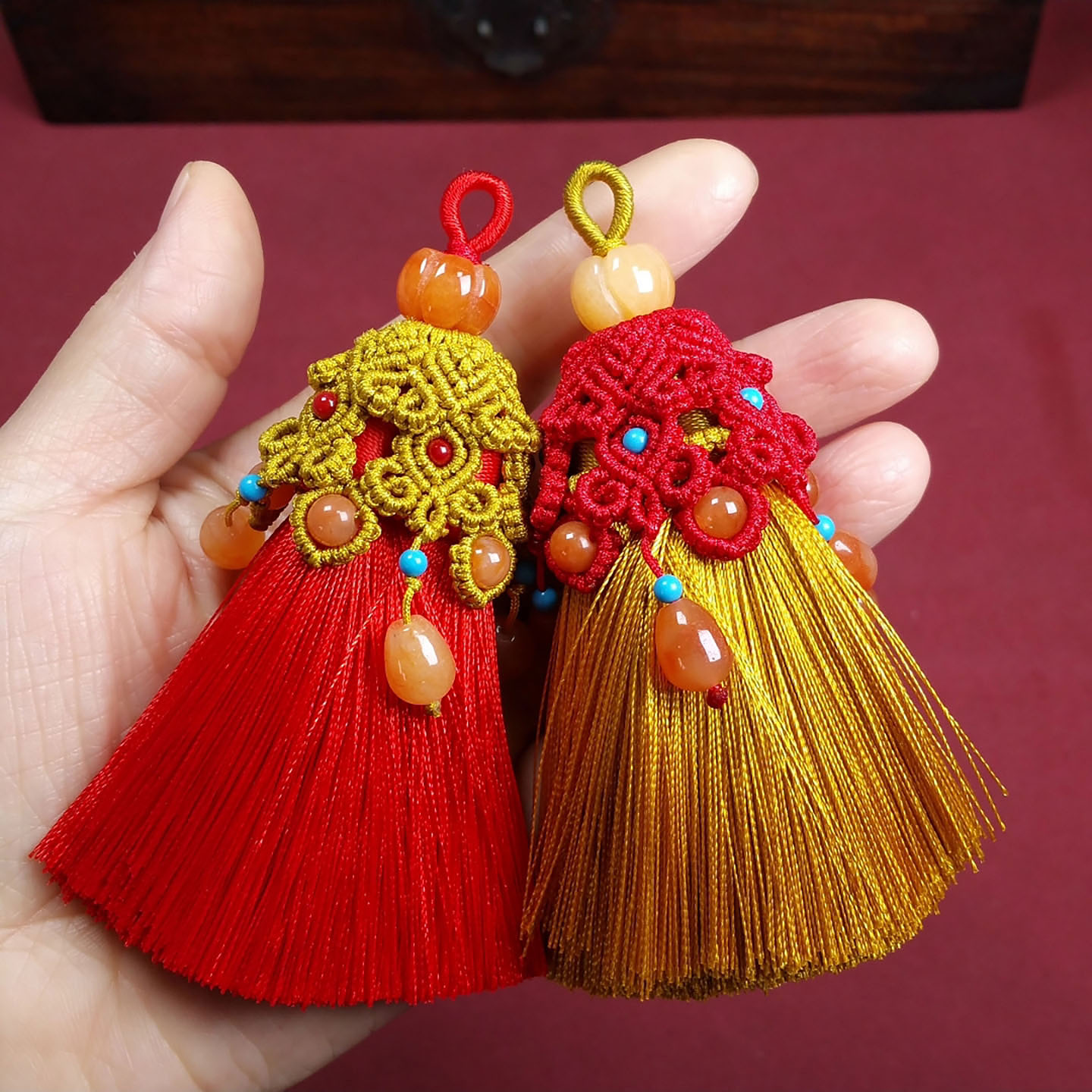 文玩手持晶缘玉之韵LS122钥匙扣手机包挂饰本命年红黄防脱丝流苏
