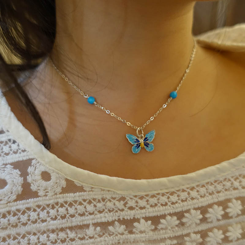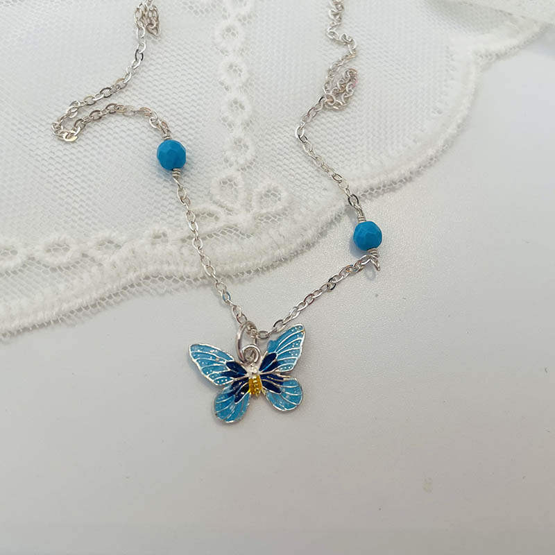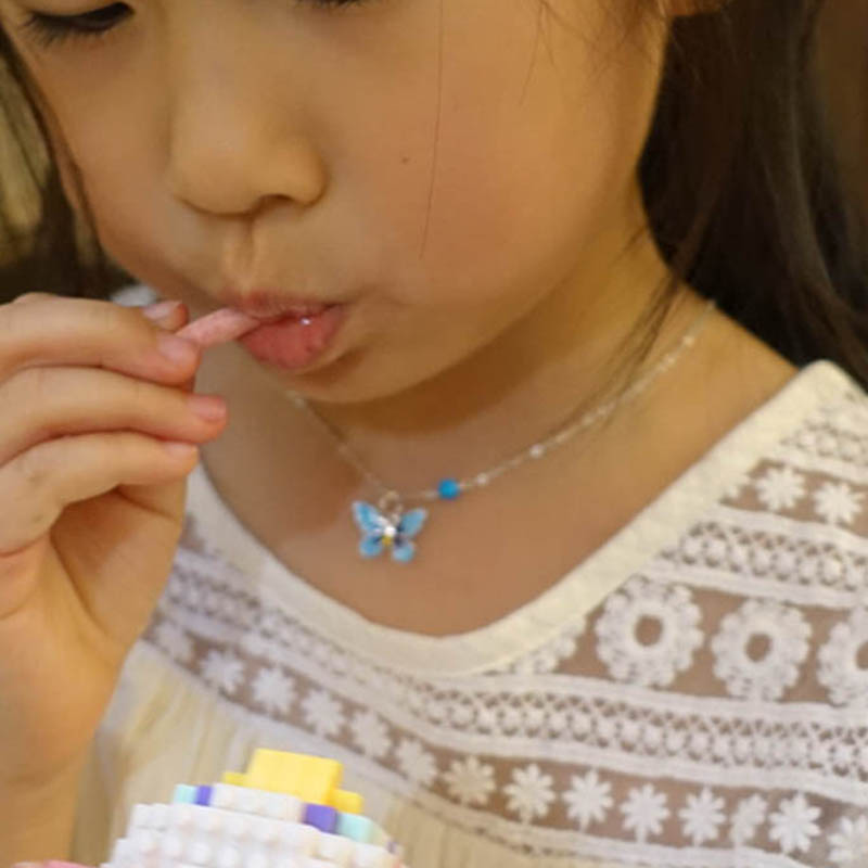 儿童项链925纯银定制双色滴油蝴蝶吊坠锁骨链轻奢手作女生日礼物