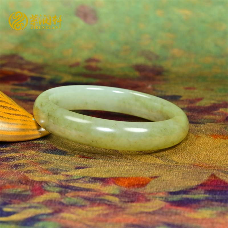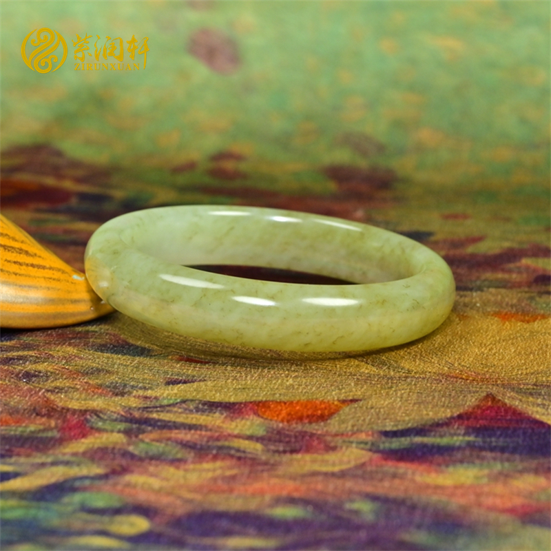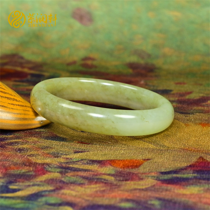 紫润轩新疆和田玉糖青白籽料手镯哑光55 6MM俏色分明籽镯收藏级