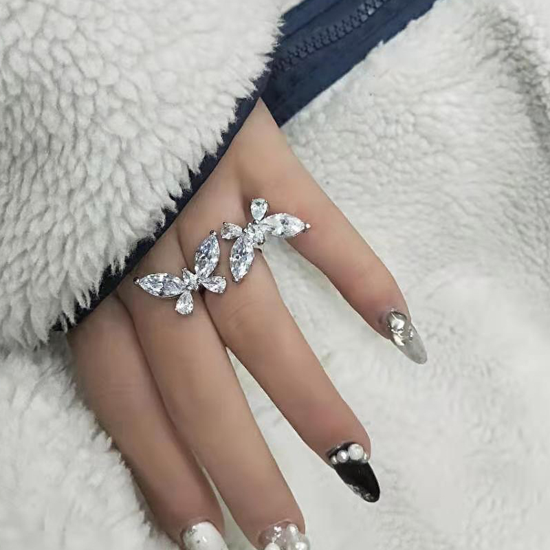 ins高质感镶钻蝴蝶锆石开口戒指欧美百搭气质网红同款配饰女