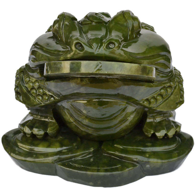 金蟾摆件玉石绿色南玉雕刻大号三足蟾蜍店铺开业礼品